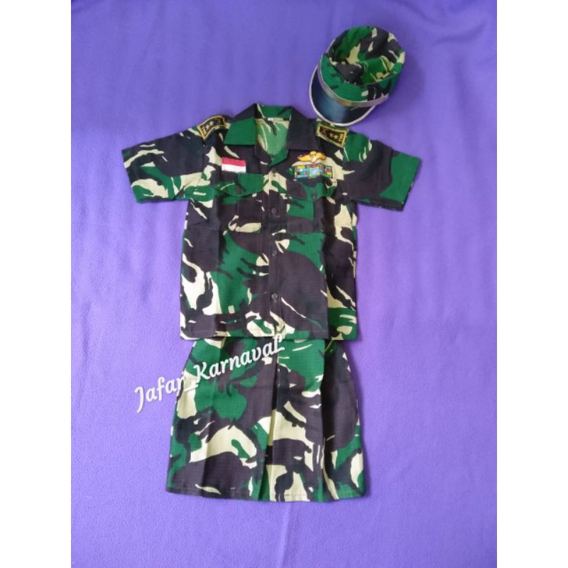 Baju karnaval Profesi ABRI/Doreng/TNI/TENTARA Tersedia Size 2 - 12 u/PUTRI model elegant dan bagus, jahitan Rapi,