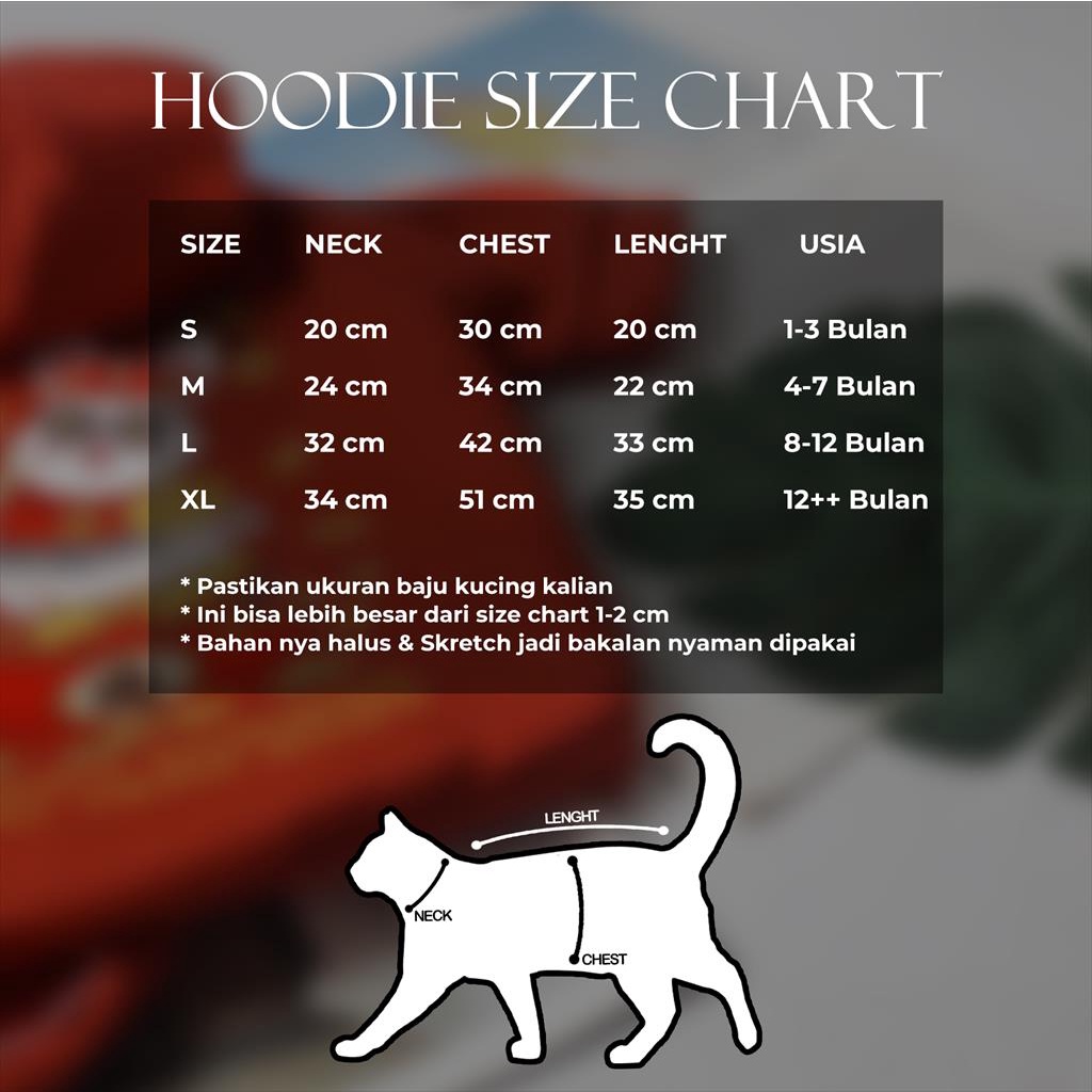 Keterangan size S : ( USIA KUCING KITTEN 1-3 BULAN ) - lingkar leher : 19 cm - lingkar badan : 25 cm - panjang badan : 20 cm