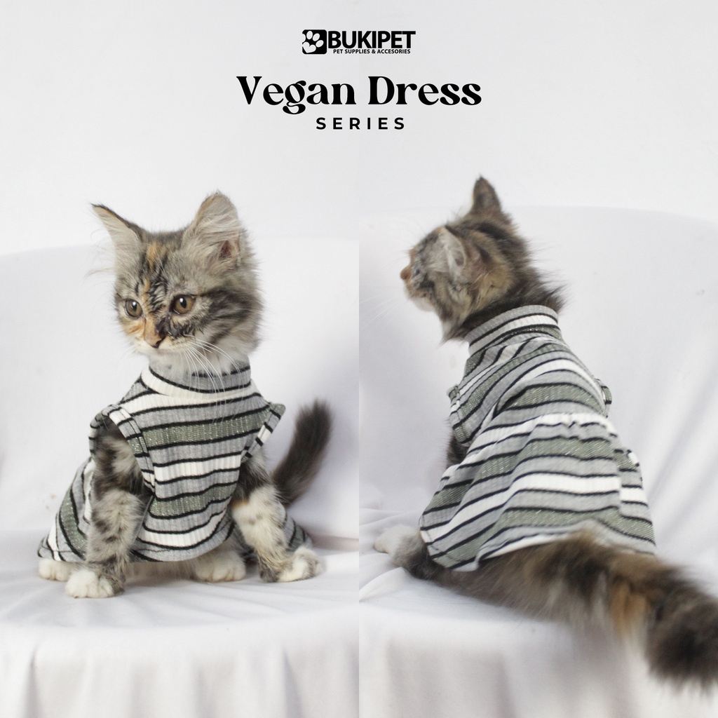 BUKIPET VEGAN DRESS merupakan sebuah baju kucing yang didesain dengan model Dress yang simple namun terlihat elegan yang dibuat dengan bahan yang lembut dan berkuliatas untuk menjaga kucing kalian dari kotoran dalam kegiatan sehari harinya.