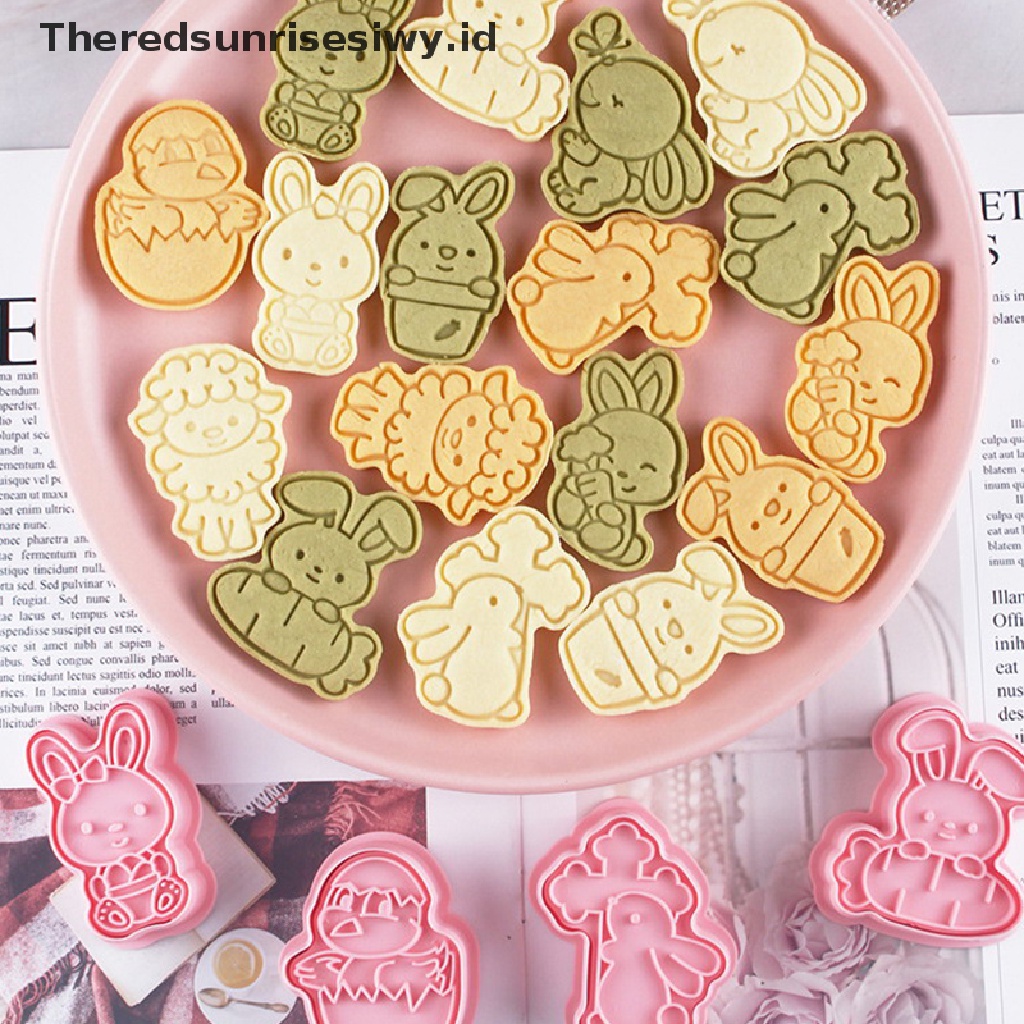 8 Pcs/set Paskah Plastik Kue Cutter Kelinci Telur Pemotong Biskuit 3D Kartun Cetakan Kelinci Alat Memanggang Pesta Paskah DIY Dekorasi