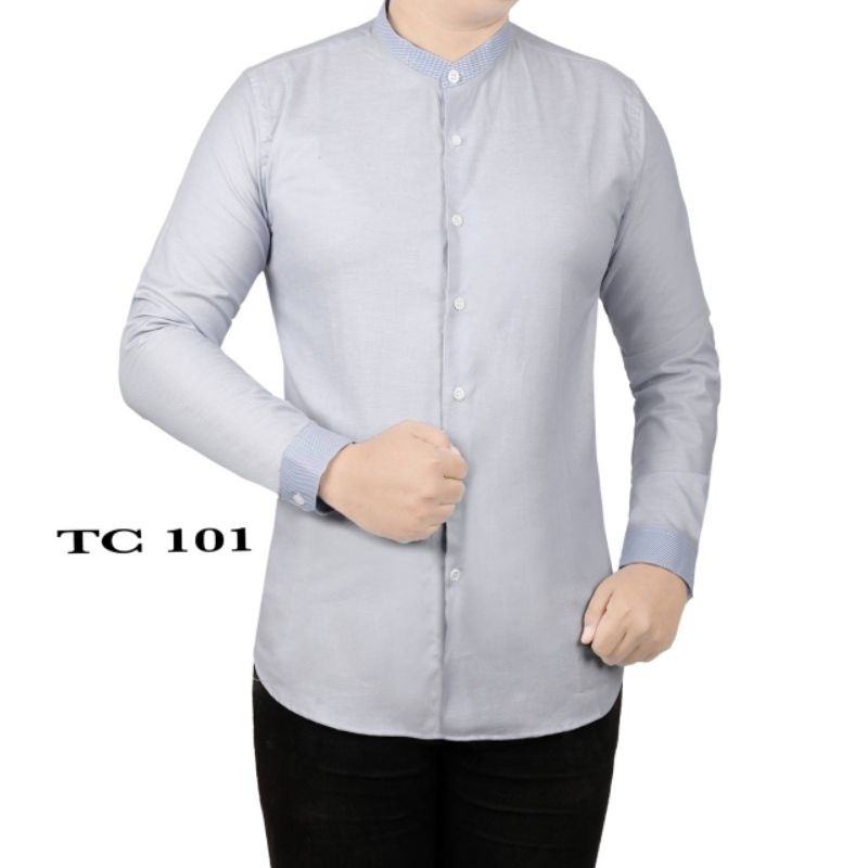Detail baju lebaran pria kerah koko bahan kattun premium