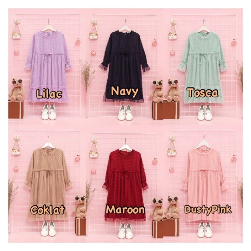 Detail BAJU LEBARAN SMILEE GAMIS QUENBEE GAMIS TILE ANAK PEREMPUAN GAMIS POLKADOT