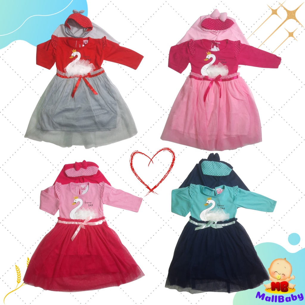 Detail Baju Muslim Bayi Perempuan Gamis Anak Cewek + Jilbab Adem Swan Pink Tutu