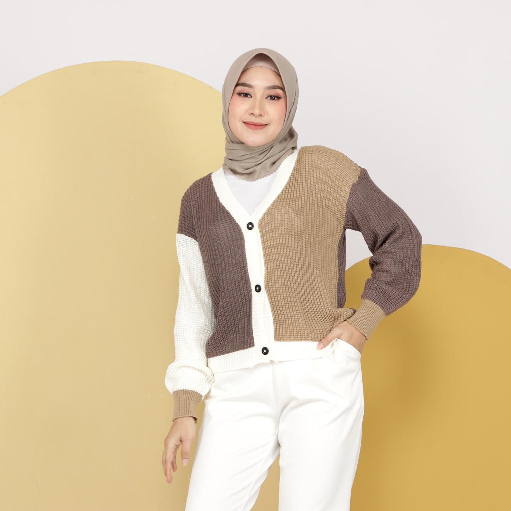 Baju Muslim Modern CARDIGAN 3TONE Bahan Knitted Cardi Modern Casual Pakaian Wanita Kekinian Atasan Muslim Hijab Luaran Casual Outher Fashion Hangat Murah Cardigan Simple Casual Baju Wanita Modern 2021