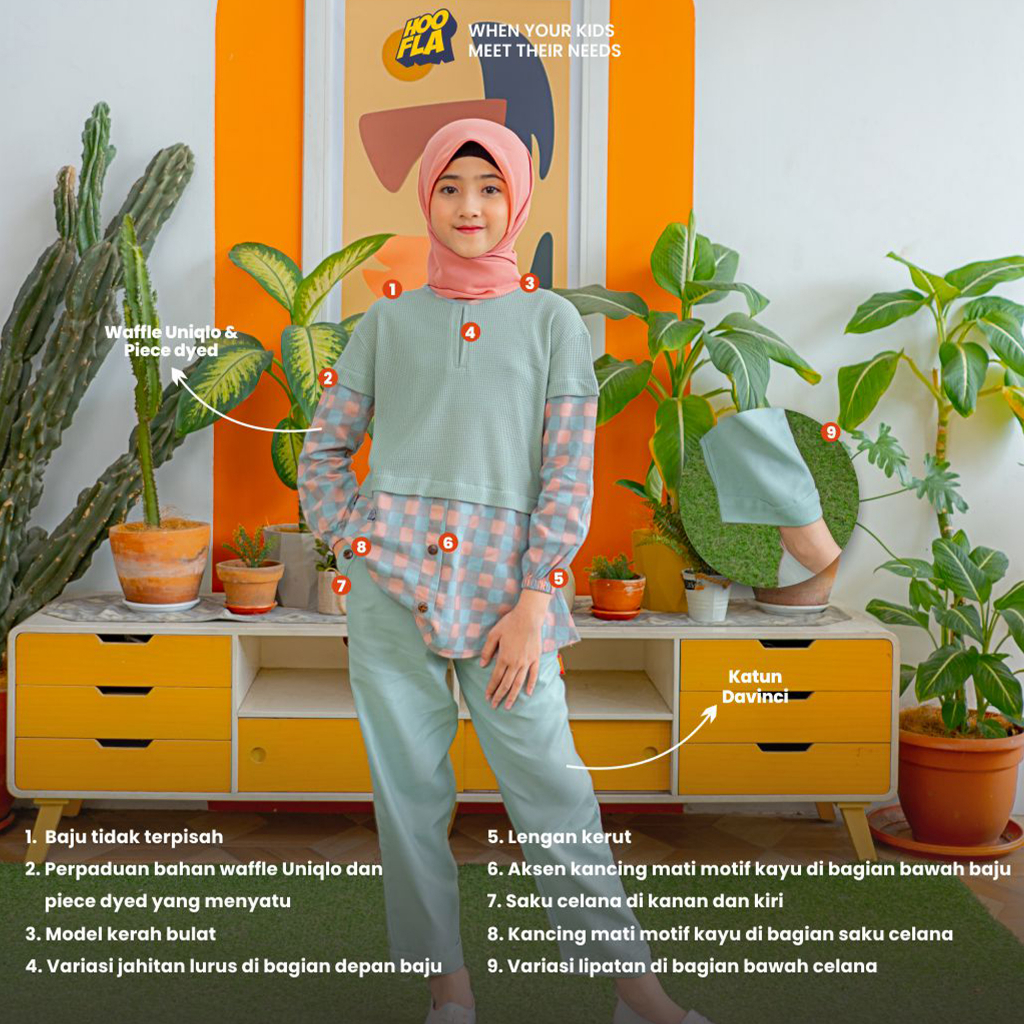 ✓ Brand: HOOFLA ✓ Bahan Baju : Waffle + Piece Dyed ✓ Bahan Celana : Katun Davinci
