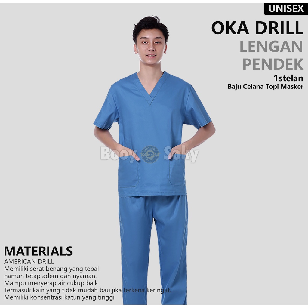 Detail Baju Ok Lengan Pendek Pria / Baju Oka Lengan Pendek Cowok Doctor's Scrub Jaga Oka Biru Muda