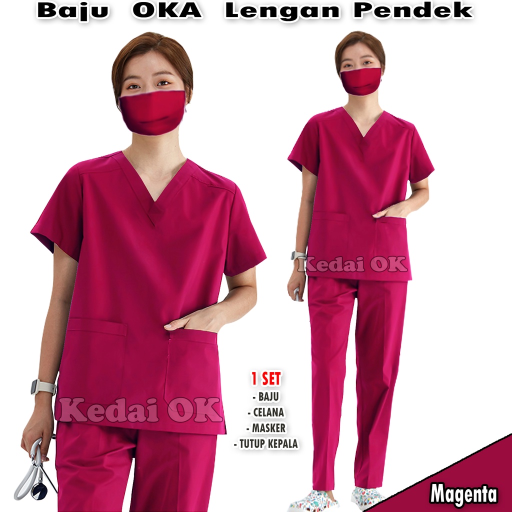 Baju Oka - Seragam Ok Medis Perawat Lengan Pendek - Baju Jaga Dokter Bidan Suster Babby Sitter - Pria dan Wanita - Bahan American Drill