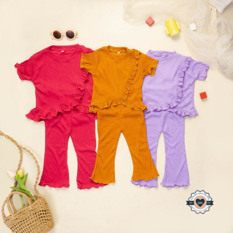 Fashion Bayi & Anak > Pakaian Anak Perempuan > Jas & Setelan > Baju Oneset Anak Perempuan MALIKA Ruffle Set Knit Rib Usia 1-5 Tahun I Baju Setelan Anak Perempuan