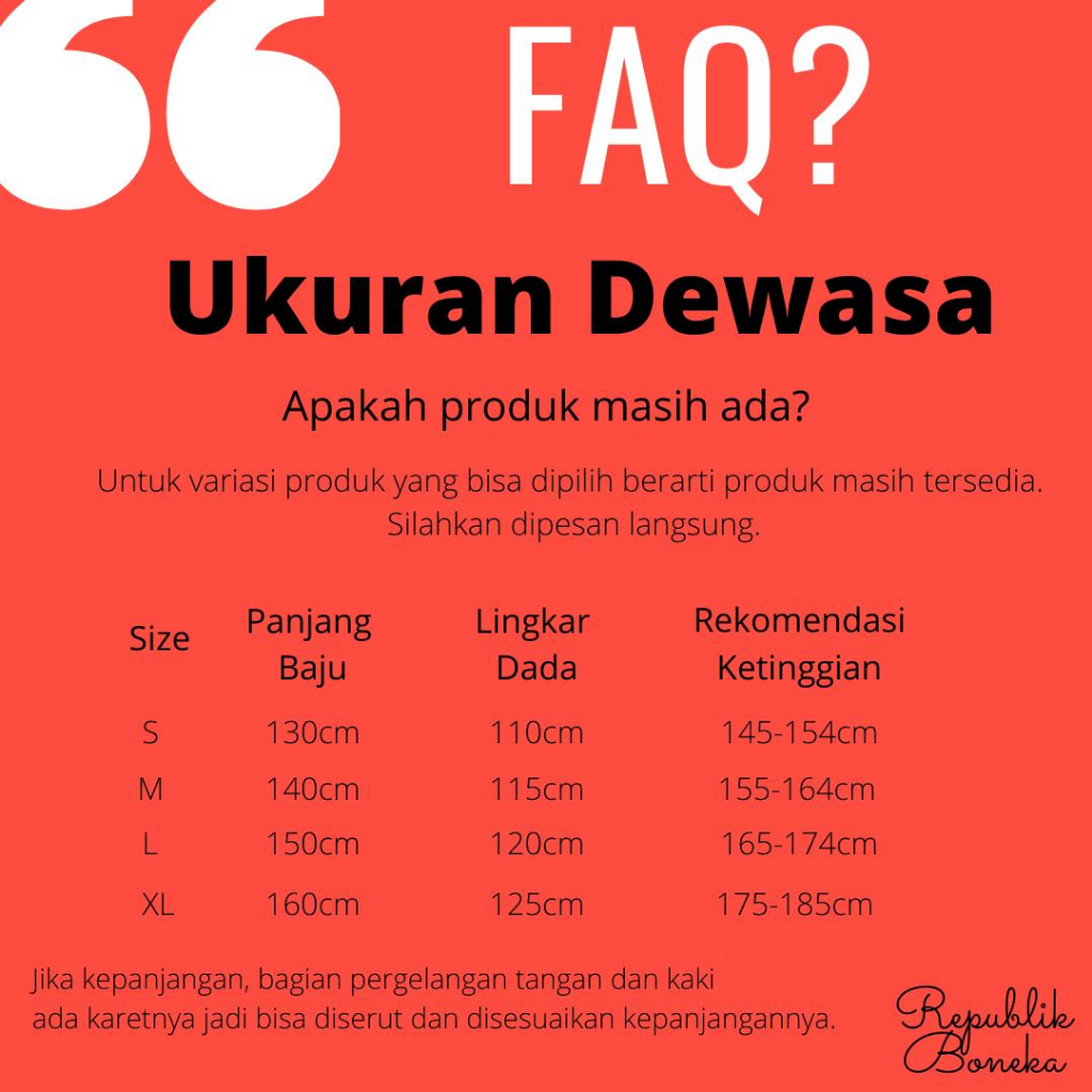 SIZE L = PANJANG BAJU 150CM // LINGKAR DADA 120CM // TINGGI BADAN 165 - 174CM