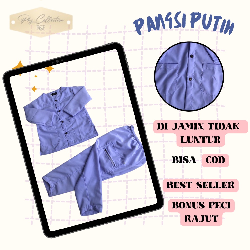variasi -baju pangsi polos putih plus iket kepala -baju pangsi polos hitam plus iket kepala -stelan pangsi polos putih plus iket kepala -stelan pangsi polos hitam plus iket kepala -celana komprang anak warna hitam dan putih