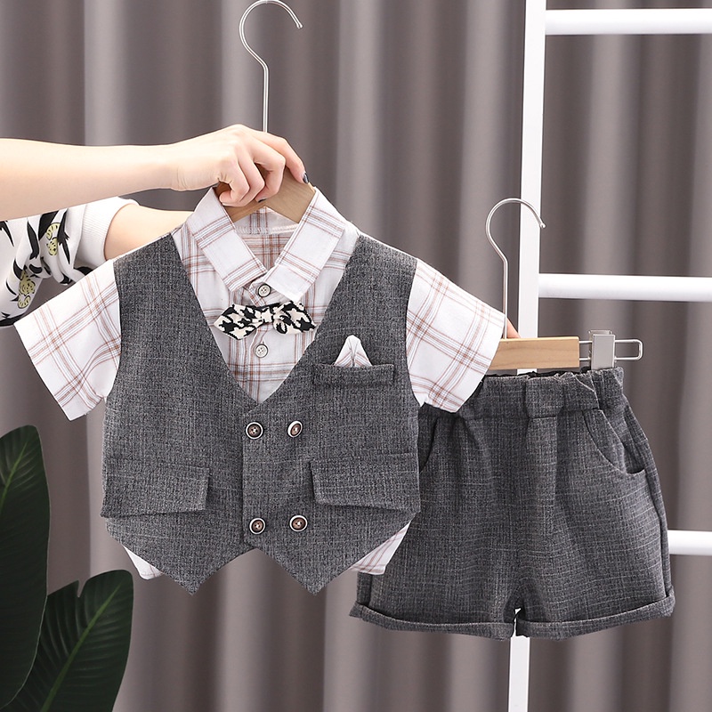 Setelan Fashion Pakaian Pesta Anak Laki Laki - 1pc Atasan Kemeja Rompi sambung - 1pc Celana katun - pinggang karet Import Quality - 100% baru Summer Design - dirancang untuk anak yg aktif bergerak di musim panas, bahan halus dan lembut - menyerap keringat cocok untuk anak yang aktif dan trendy - nyaman dan ringan dipakai
