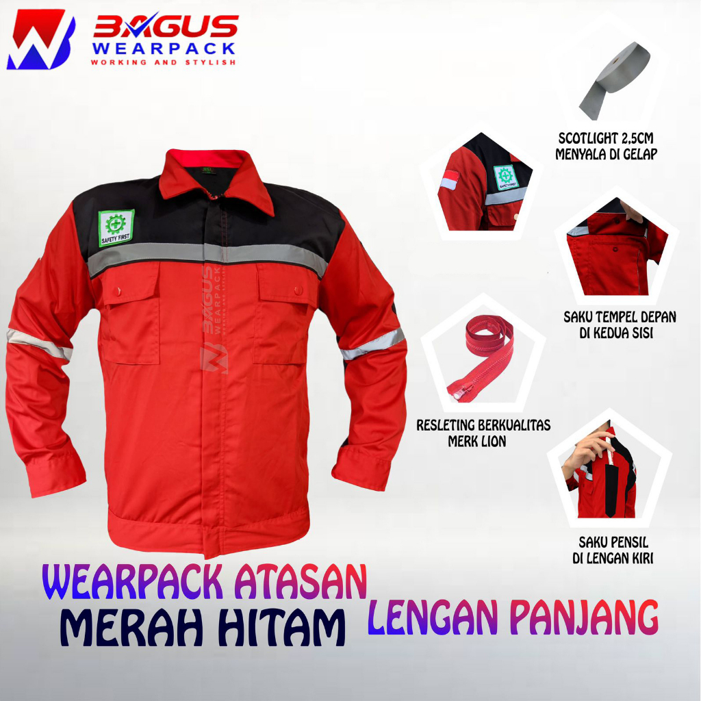 BAJU PROYEK KEREN / BAJU KERJA PRIA PROYEK / BAJU KERJA PIRA LAPANGAN / BAJU WEARPACK LENGAN PANJANG / BAJU WEARPACK / WERFAK PRIA KERJA / BAJU WEARPACK KERJA PROYEK / WEARPACK PROYEK / WEARPACK PRIA KEREN / BAJU PROYEK LENGAN PANJANG / MERAH HITAM