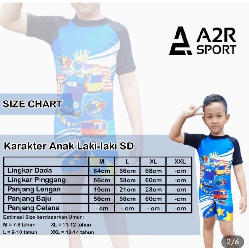 Detail A2R Sport - Karakter Diving pendek SD Baju renang anak