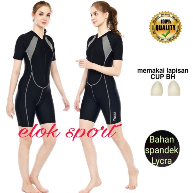 Detail baju renang wanita baju renang wanita dewasa lapis Cup BH baju renang model diving baju renang perempuan baju renang polos baju renang tangan pendek Diving wanita tangan pendek dewasa