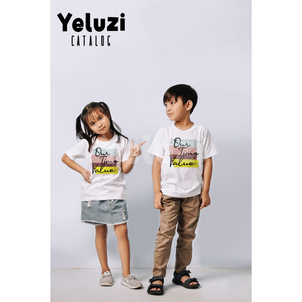 Detail Baju Sarimbit Couple Keluarga Kaos Oblong Our Time Has Value - Putih - YELUZI