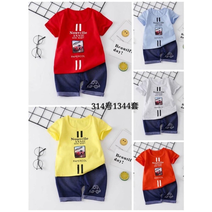 Baju Setelan Anak Laki-Laki Impor Celana Pendek Atasan Cowok Balita 6 Bulan 1 2 3 4 5 Tahun