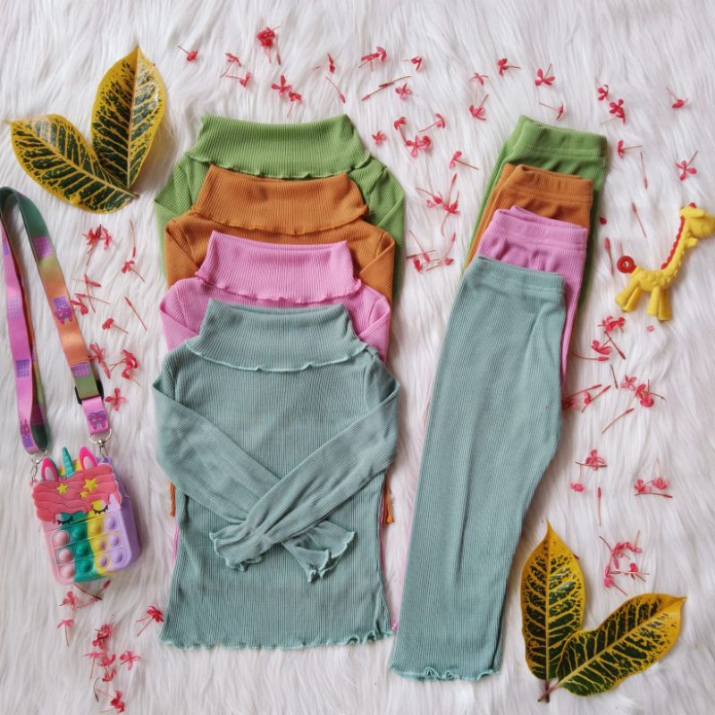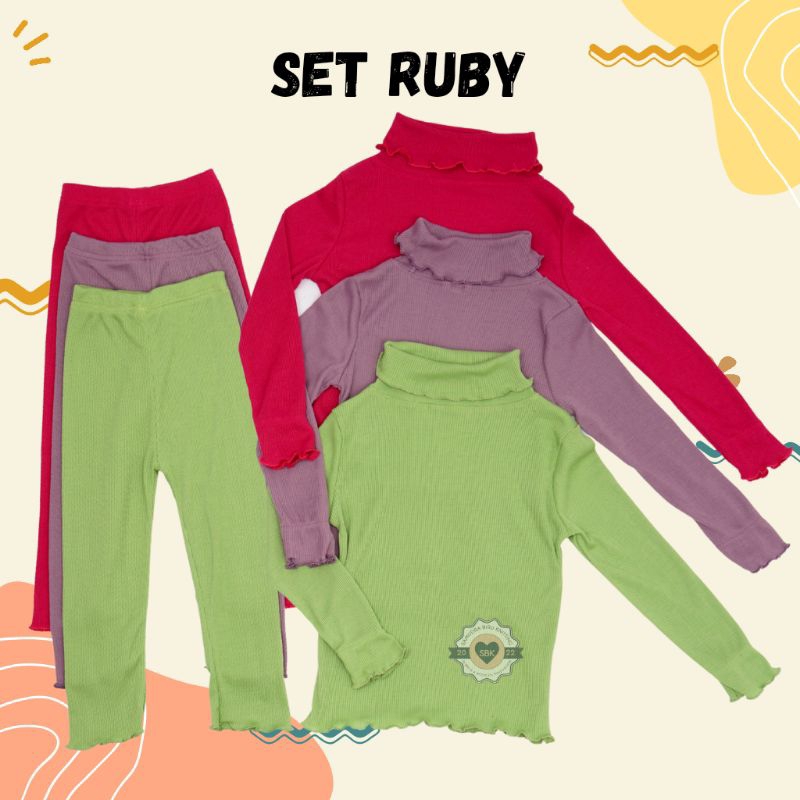 Baju Setelan Anak Perempuan Ruby Lengan Panjang Bahan Rib Knit Size SMLXL Bahan Melar Sampai 5 cm estimasi untuk 6bln - 5 Tahun