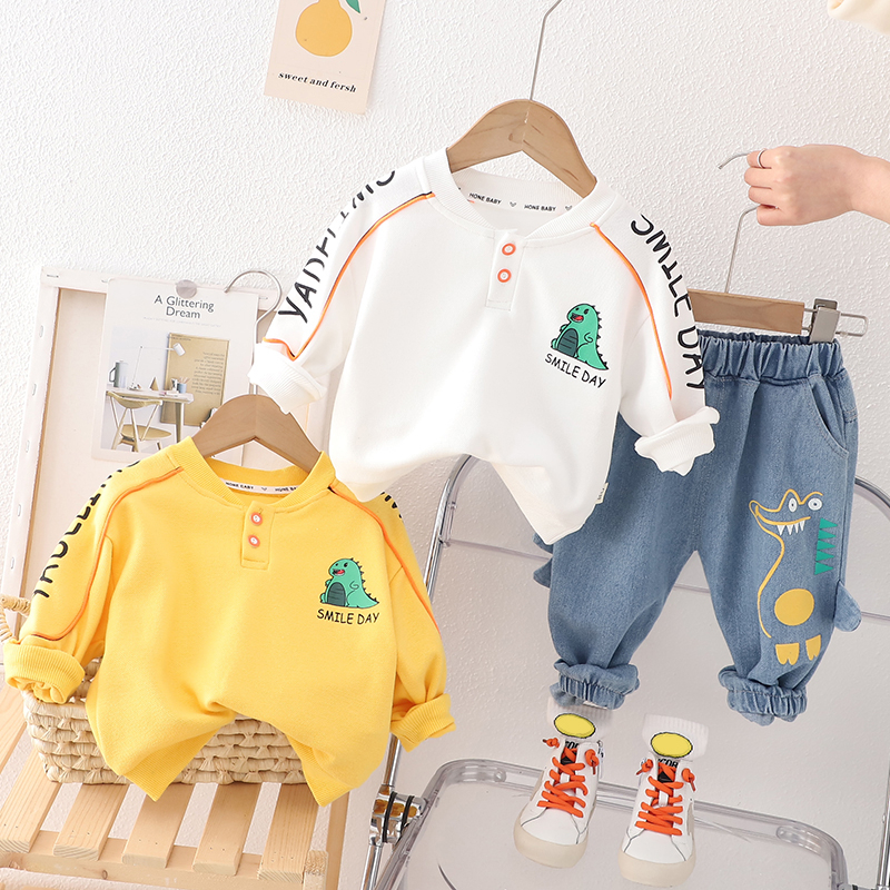 Fashion Bayi & Anak > Pakaian Anak Laki-Laki > Jas & Setelan > Baju Setelan anak SMILE DAY yellow & white usia 6 bulan - 5 tahun / Pakaian baby laki-laki lucu premium