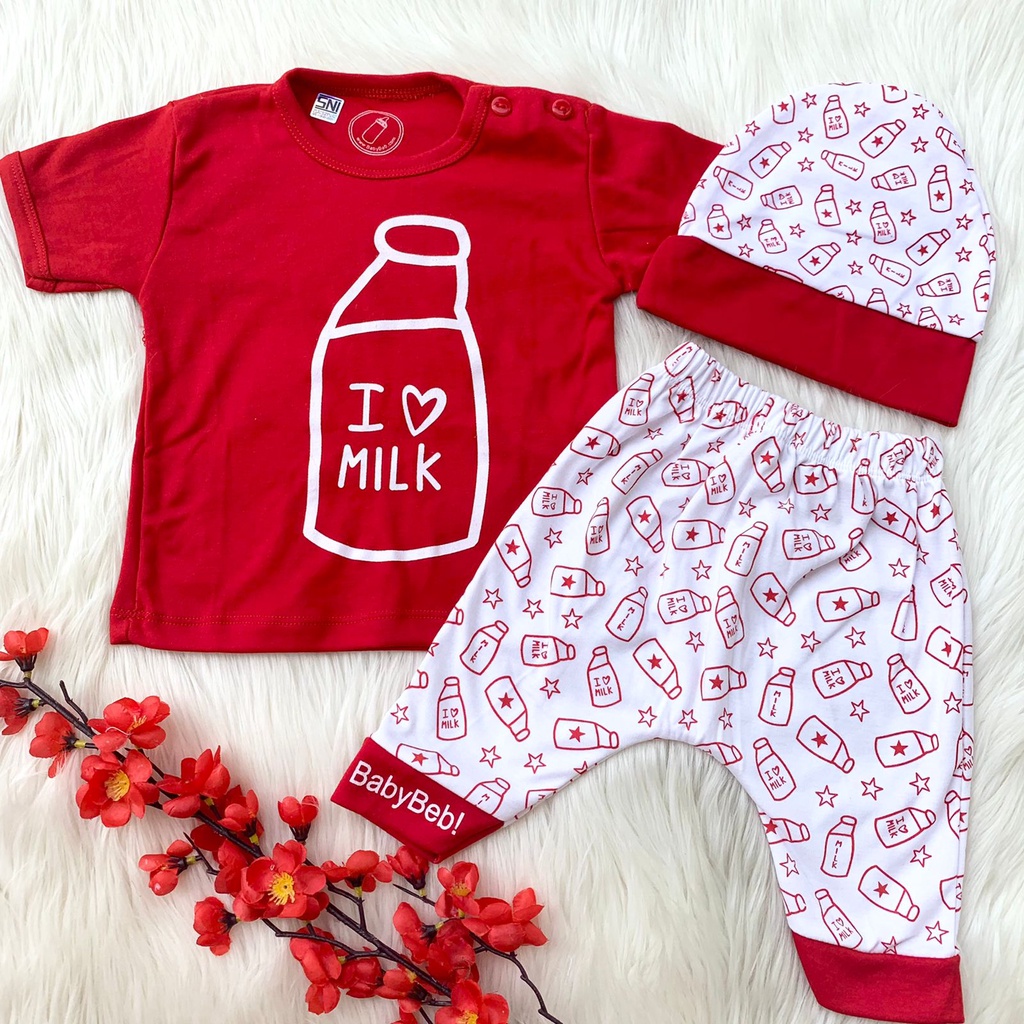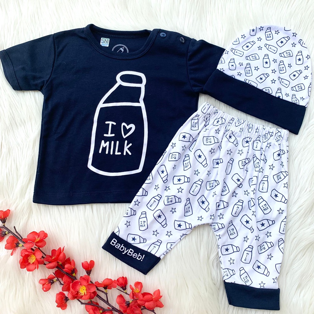 Baju setelan kaos celana topi i love milk lucu pergi casual fashion anak bayi cowok laki cewek perempuan murah -ilo