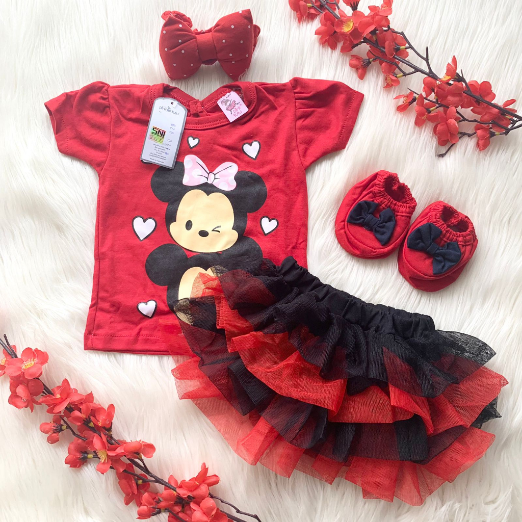 Baju setelan kaos rok bandana motif tsum2 bestseller fashion anak bayi cewek perempuan murah -tsu