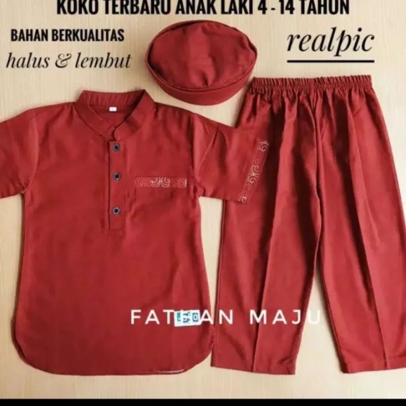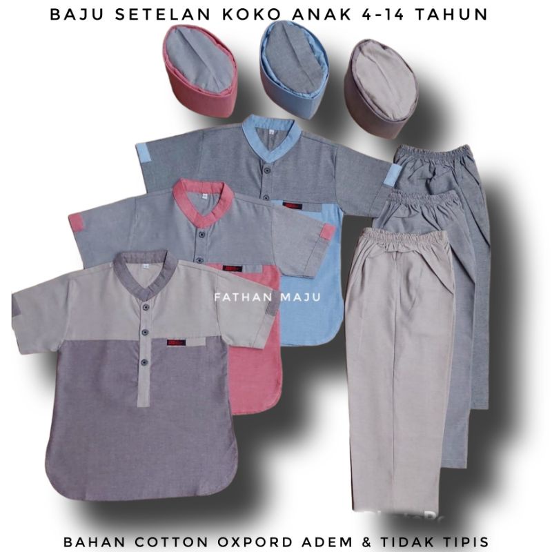 Baju setelan koko anak laki laki umur 4-14 tahun tangan pendek Pakaian muslim anak Terbaru Terlaris