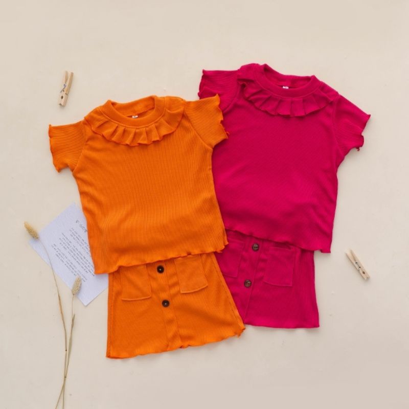 Baju Setelan Rok Anak Perempuan Raisa 1-5 Tahun Ruffle Knit Rib Rok Bahan Knit rib