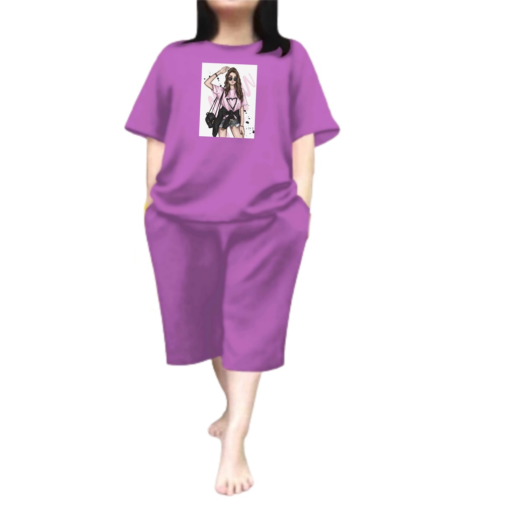 Baju Setelan Wanita Dewasa Jumbo Ld 115 Cm One Set Wanita Kaos dan Celana Pendek Oversize 3/4 Baju Setelan Cewek Dewasa Terbaru 2023 Kekinian Stelan Wanita Dewasa Viral Set kaca mata abg