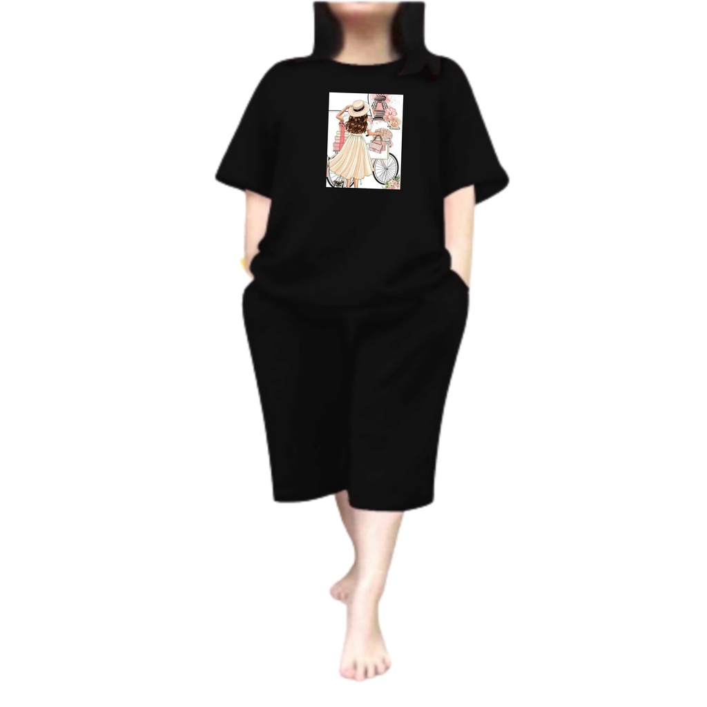 Baju Setelan Wanita Dewasa Jumbo Ld 115 Cm One Set Wanita Kaos dan Celana Pendek Oversize 3/4 Baju Setelan Cewek Dewasa Terbaru 2023 Kekinian Stelan Wanita Dewasa Viral Set sepeda paris