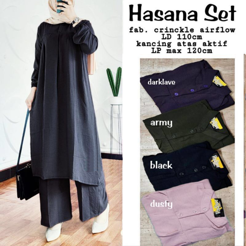 🔸 DETAIL PRODUK; - Nama : Hasana Set - Bahan : Crinkle airflow - ancing Atas Aktif - Motip Polos