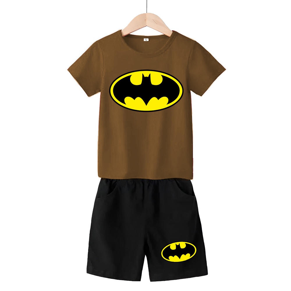 Detail Baju Stelan 3/4 Anak Bat man Cowok Cewek Usia 1 - 4 Tahun Celana Pendek Harian