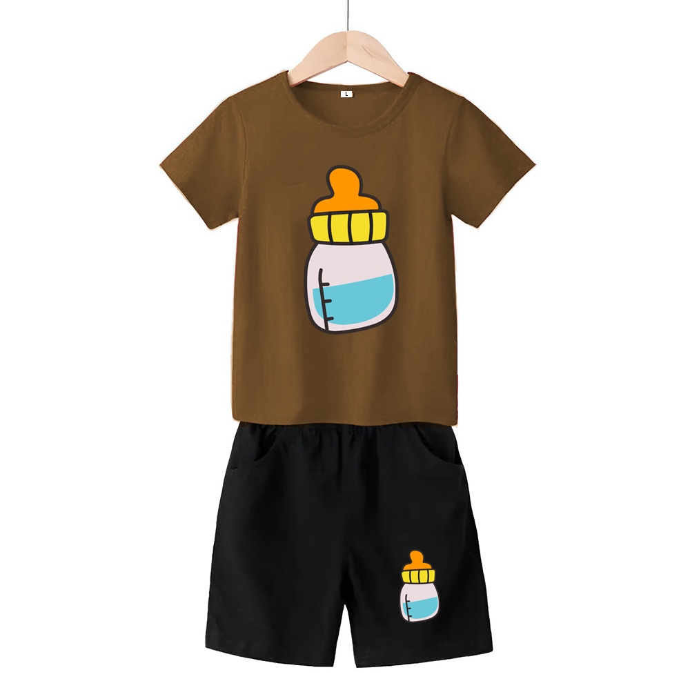 Detail Baju Stelan 3/4 Anak Botol Cowok Cewek Usia 1 - 4 Tahun Celana Pendek Harian