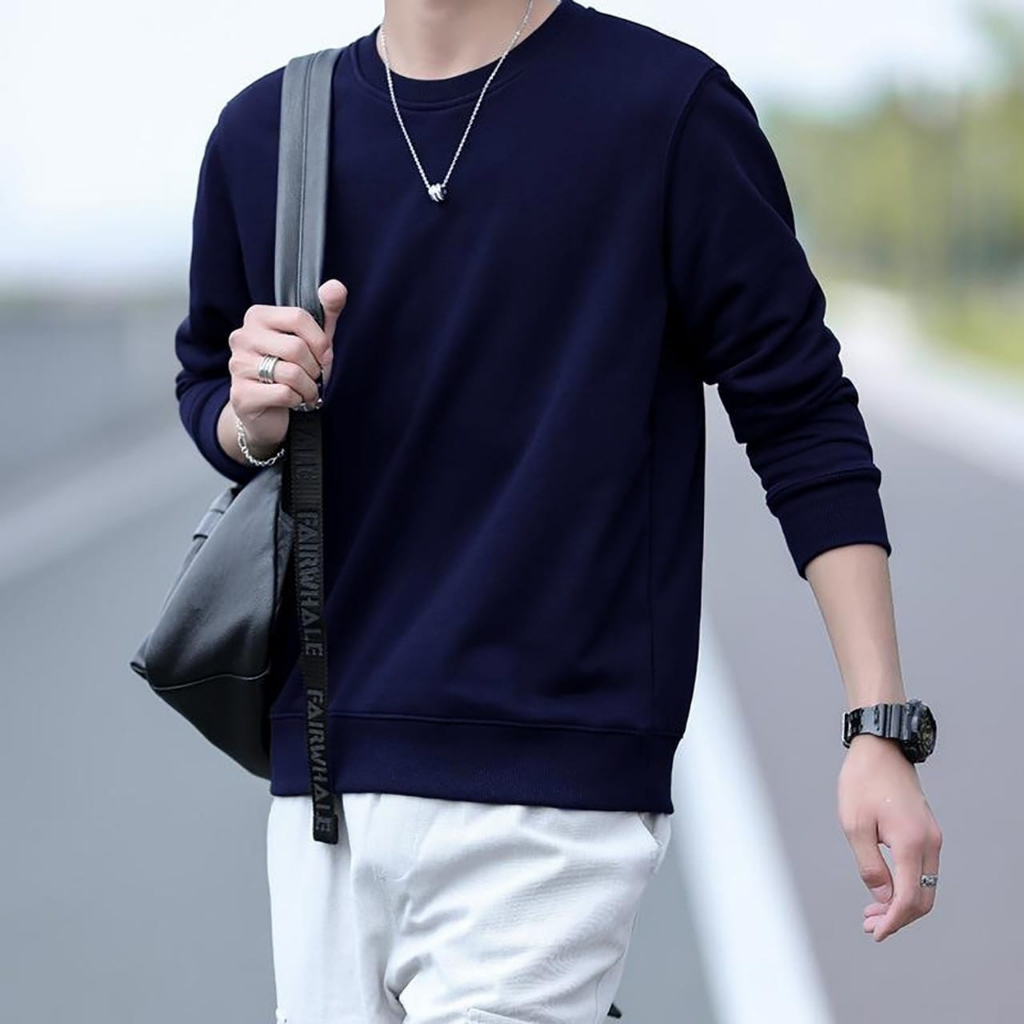 Detail Baju Sweater Basic Polos Pria Lengan Panjang Casual Fashion Cowok
