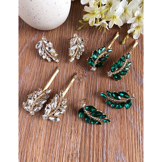 LRC Jepit Rambut Fashion Alloy + Drill Alloy Studded Leaf Hairpin F6757X