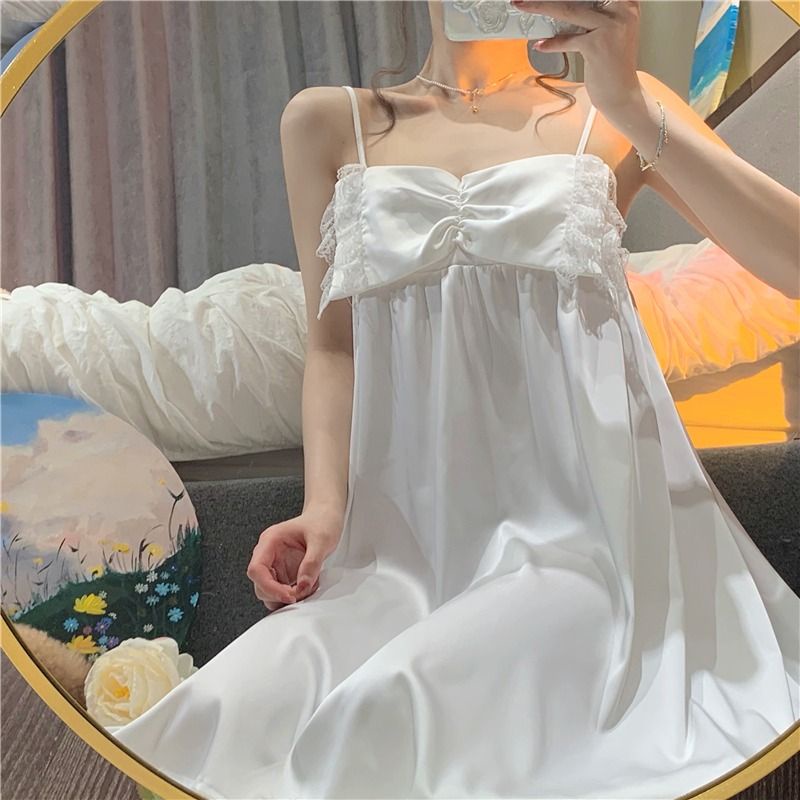 Pakaian Wanita > Pakaian Tidur & Piyama > Daster > Baju tidur bretel Prancis baju tidur rumah memakai baju tidur busur sutra sutra musim panas yang tip