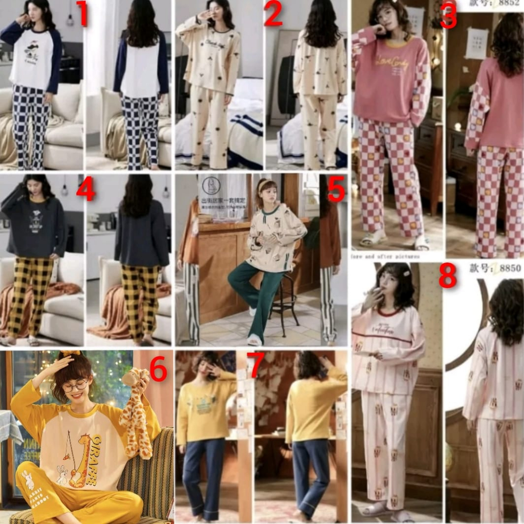 Baju tidur piyama kaos import lengan panjang celana panjang