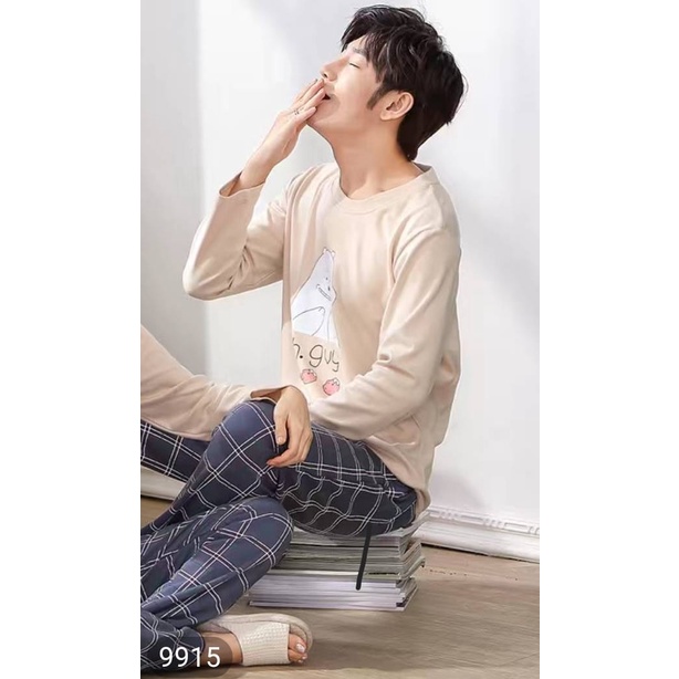 Detail baju tidur piyama kaos import,cowok lengan panjang celana panjang PPkaos027