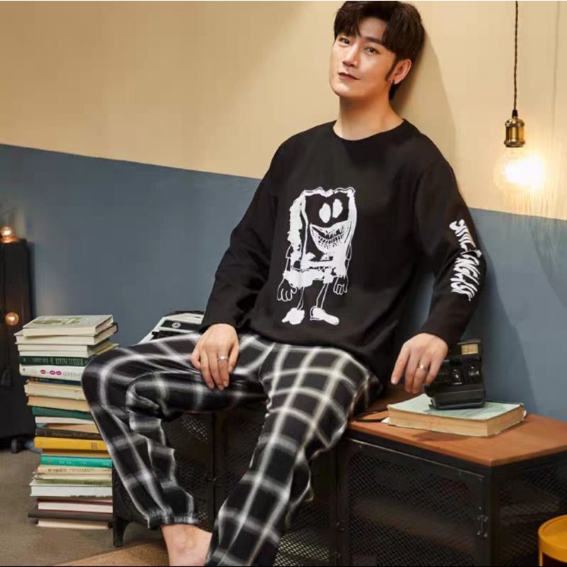 Detail Baju tidur piyama pria stelan panjang kaos import