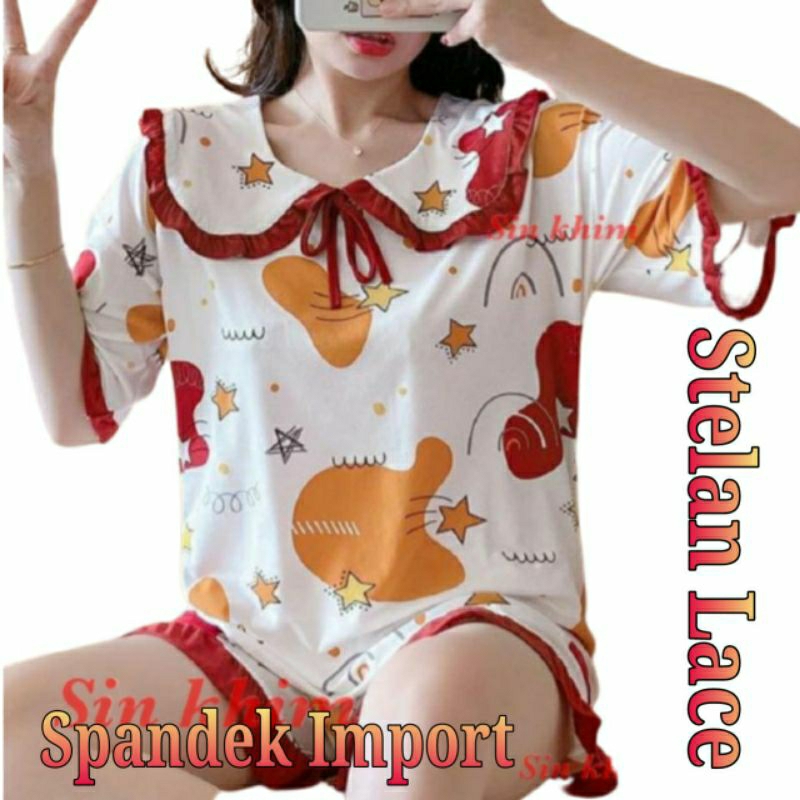 Baju setelan piyama kerah import/Set piyama korea import bahan kaos adem ukuran fitt to xl