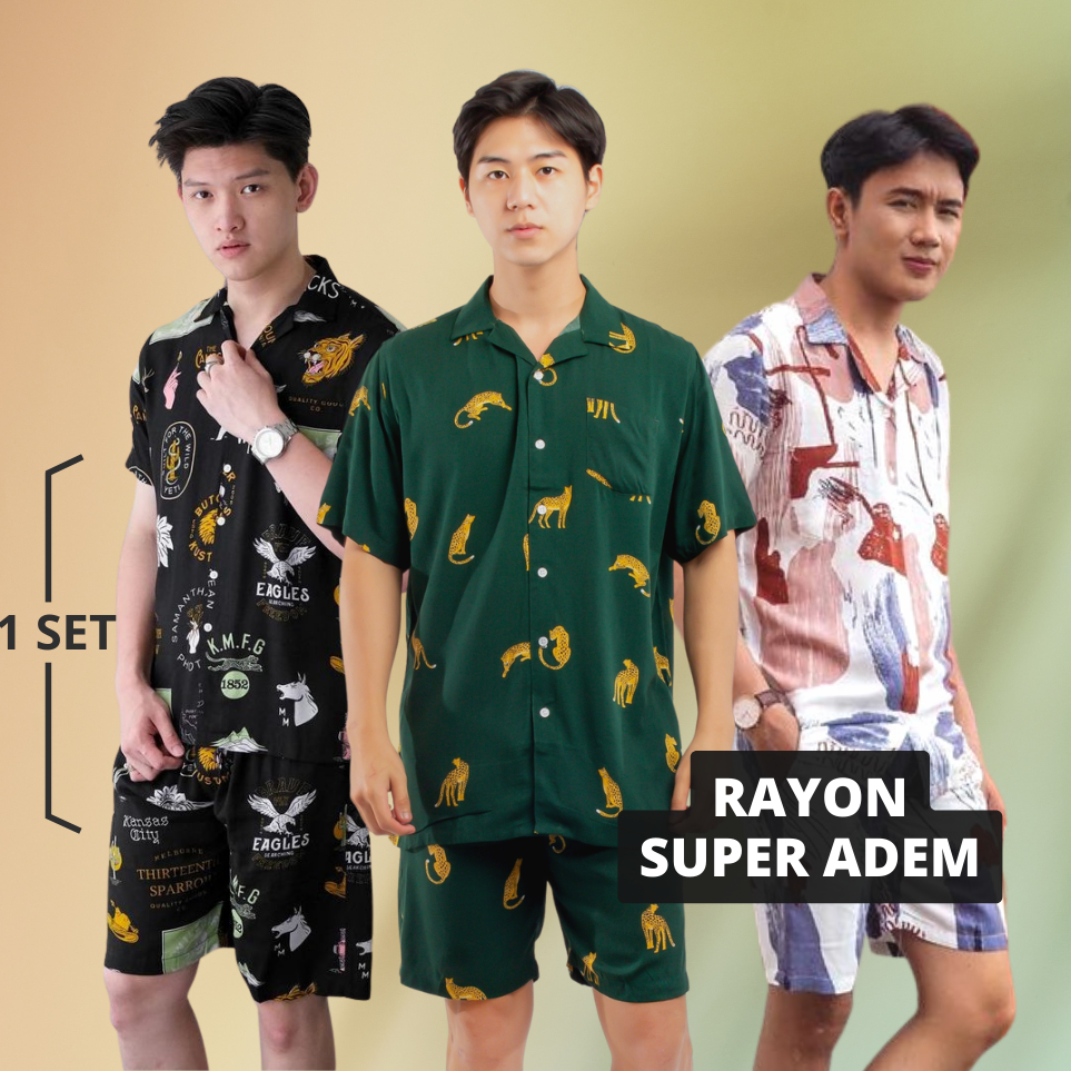 Produk ini bisa dipakai oleh pria dan wanita/ Unisex, cocok untuk bersantai dirumah, nyaman untuk tidur dan juga cocok untuk jalan jalan keluar detail kemeja yang unik dan artistik, membuat kalian terlihat fresh dan fashionable. Set Hawaiian Printing yang rekomen ini sudah termasuk kemeja dan celana, berbahan katun rayon yang tidak gerah dipakai, sehingga nyaman sekali.
