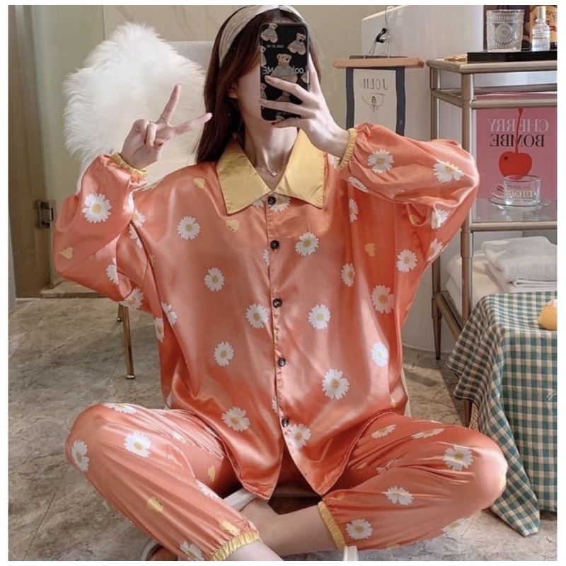 Detail BAJU TIDUR SYARIH PANJANG SET CELANA SATIN IMPORT SIZE M-2XL MOTIF NEW COLLECTION JOGGER PANTS PIYAMA SYARIH SILK PREMIUM