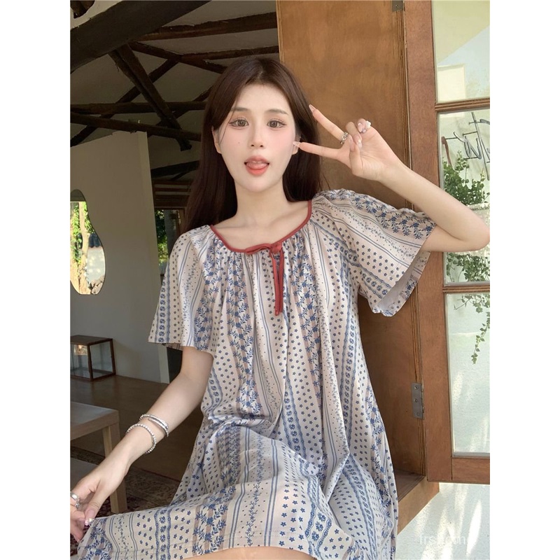 Detail Baju tidur wanita / asrama longgar / asrama longgar siswa / pakaian rumah bagian tipis / gaun yang b