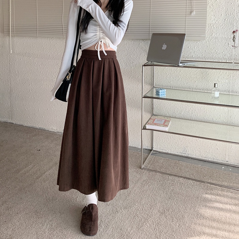Detail Baju Wanita Rok Midi A-line Hitam Rok High Waist Korean Style