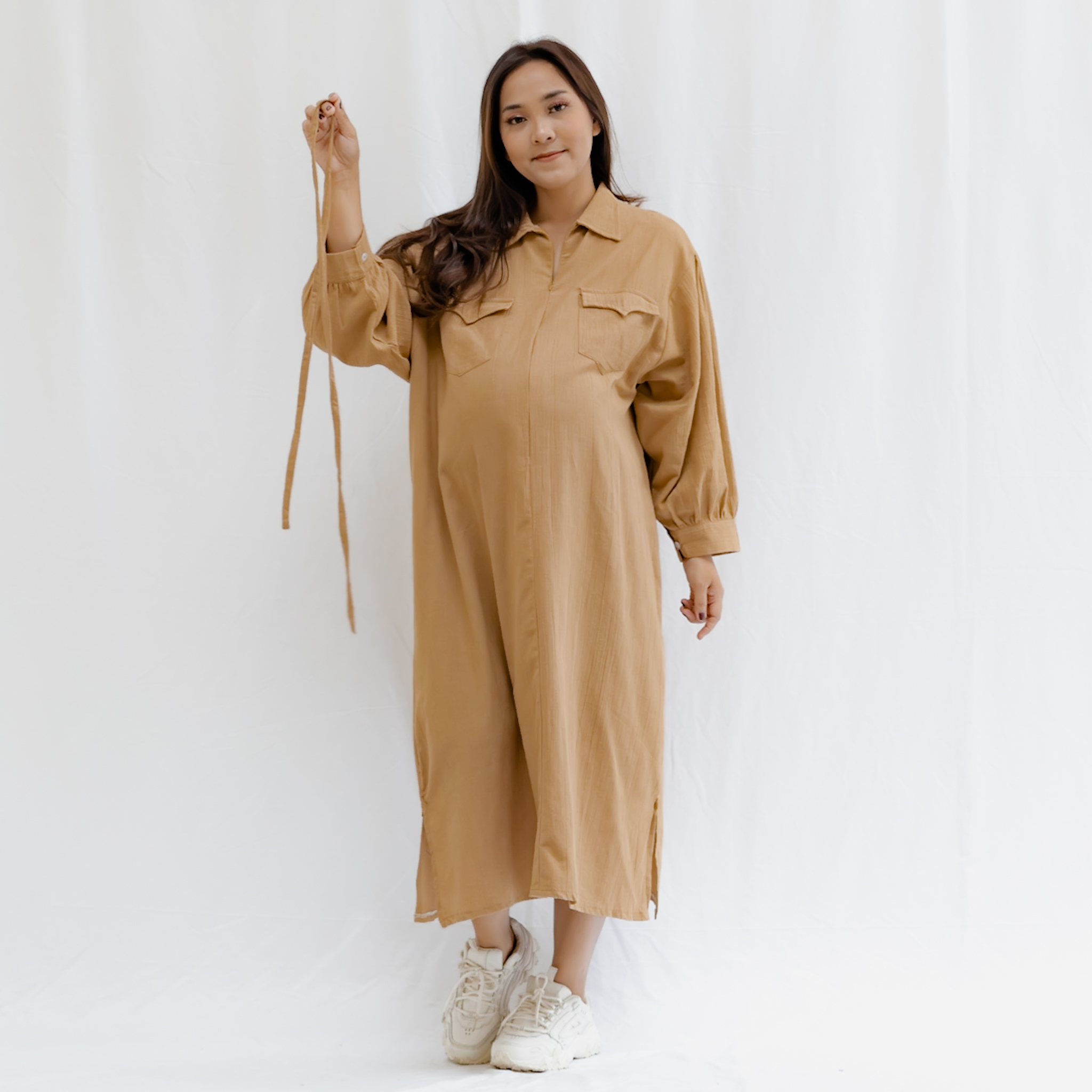 Bahan: linen crinkle premium . Midi Dress BUSUI dan BUMIL FRIENDLY resleting depan lengan panjang yang super nyaman dan premium, bisa dipakai hijab ataupun non hijab 👍 . FREE TALI PINGGANG TERPISAH . Ukuran: All Size (fit to S-XXL) Lingkar dada -+120cm Panjang lengan -+47cm Lingkar ketiak -+60cm Panjang baju -+115cm