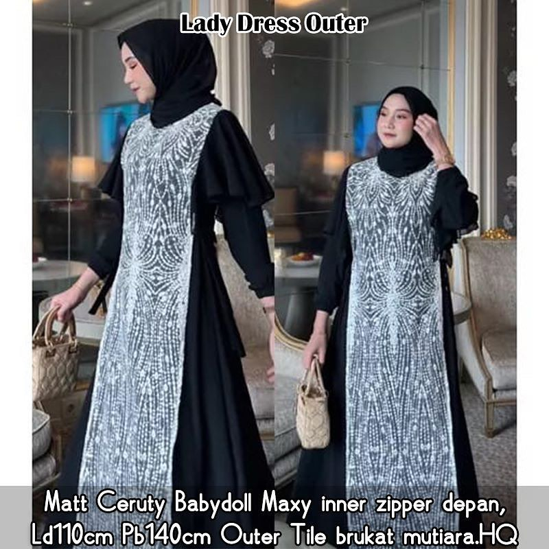 🔸Detai Produk - Nama : Lady Dress - Bahan : Ceruty Mix Brukat Premium - Motip : Polos - Model : Gamis Inner outer