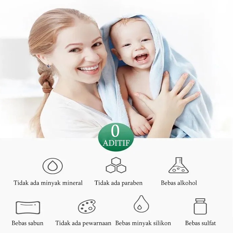Setelah mandi dapat melembabkan kulit bayi dan mengatasi masalah kulit kering dan biang keringat. Ada juga niacinamide yang dapat menembus jauh ke dalam kulit dan memperbaiki kerusakan kulit dari sumbernya. Menjadikan kulit bayi lebih putih, tampak lebih berseri dan berseri.