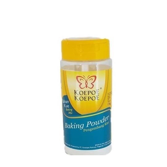 Baking powder Koepoe Koepoe digunakan untuk mengembangkan berbagai macam adonan kue, bolu, roti, dan biskuit. Dibuat dari bahan pilihan yang bermutu tinggi untuk kesempurnaan kue Anda. Keunggulan (unique selling point): 1. Terbuat dari bahan khusus yang berkualitas untuk aneka masakan, kue, roti, maupun biskuit sejak tahun 1942 2. Kualitas ekspor dan sudah diterima di berbagai negara dengan standar pangan ketat 3. Sertifikasi BPOM, HALAL, ISO 22000 dan HACCP 4. Memenuhi standar GMP 5. Kemasan yang praktis dalam penggunaan 6. Tanpa pengawet Note: Di setiap seal baking powder terdapat 2 lubang kecil untuk memberikan udara