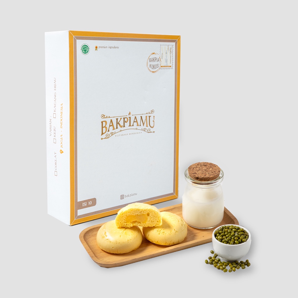 BAKPIAMU (BAKPIA KUKUS) adalah produk terbaru hasil inovasi bakpia dan bisa menjadi pilihan alternatif oleh-oleh selain bakpia panggang. Bakpiamu pas banget dipilih menjadi buah tangan dan oleh-oleh khas jogja yang istimewa unik nya. 1 BOX ISI 10 BAKPIA