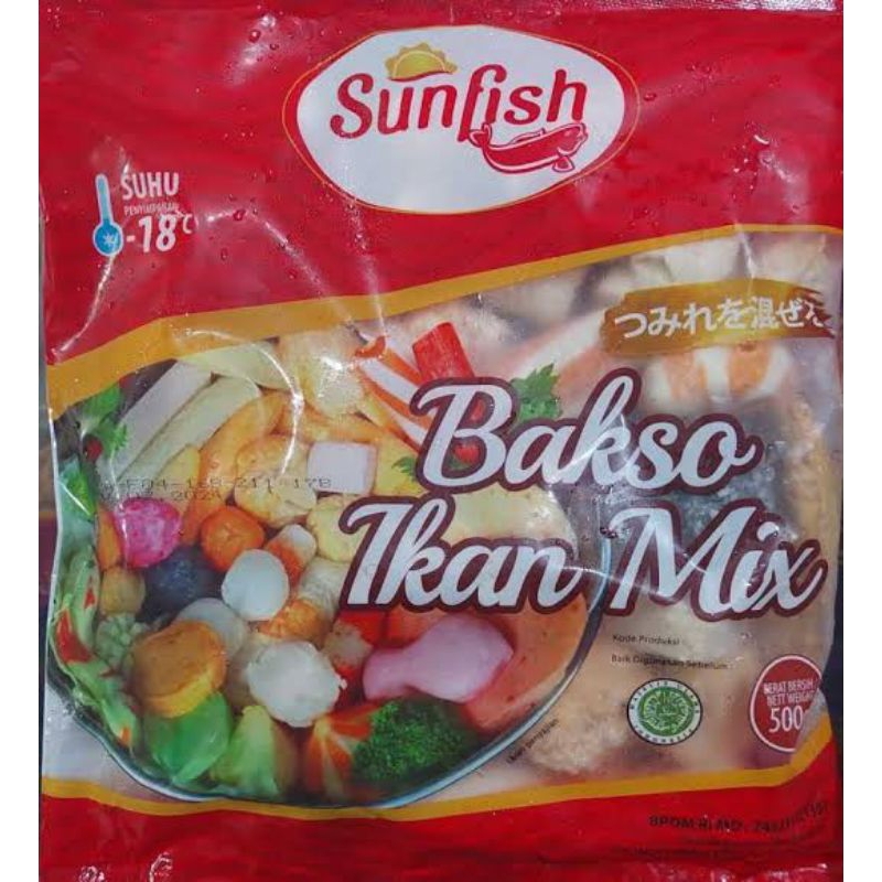 sunfish bakso mix kemasan 500gr isian nya lengkap semua produk sunfish jadi dalam 1 kemasan bakso mix seafood sunfish