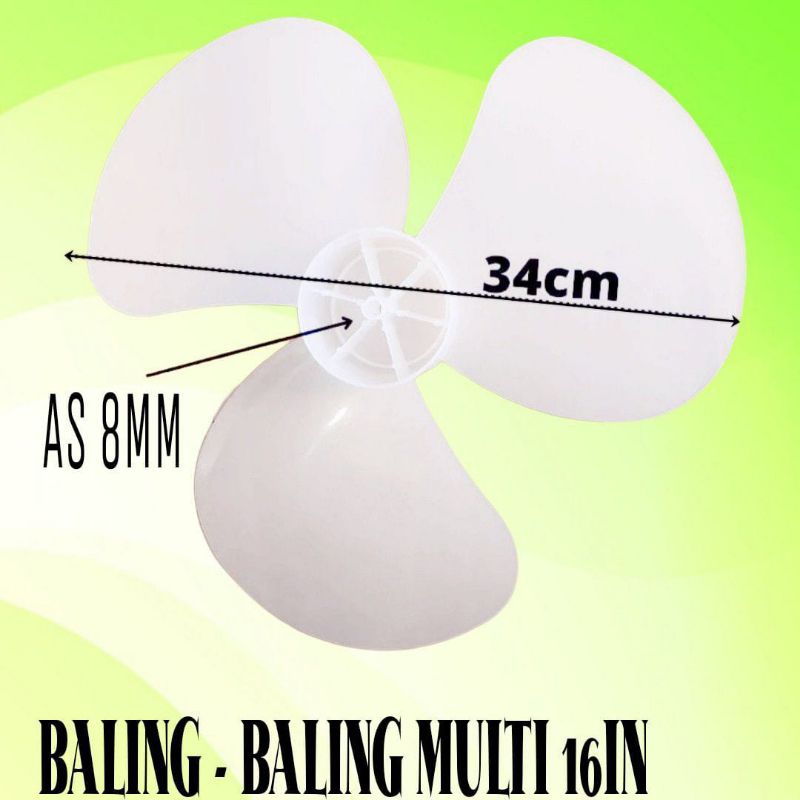 Baling Baling Kipas Angin 16 inch ( untuk SANEX. GMC. MASPION, COSMOS, MIYAKO dan berbagai merk kipas yang memiliki bentuk yang sama ) * Terbuat dari material Plastik Tebal dan Lentur ( Angin Kencang dan Stabil ) * Diameter Baling2 -/+ 37 cm * Ready Warna Biru * Diameter as 8 mm (( HARAP TIDAK MENGGABUNGKAN PESANAN DENGAN DINAMO !! ))
