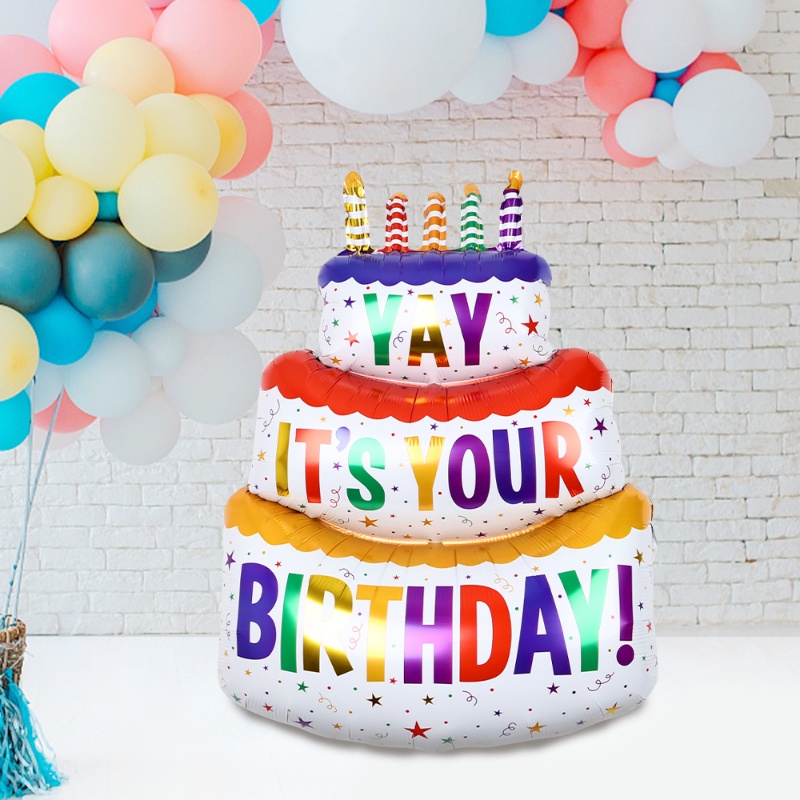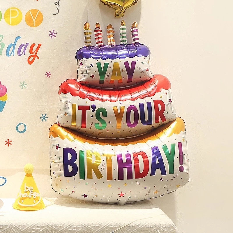 Detail Balon Aluminum Foil Bentuk Kue Ulang Tahun Warna-Warni Untuk Dekorasi Pesta